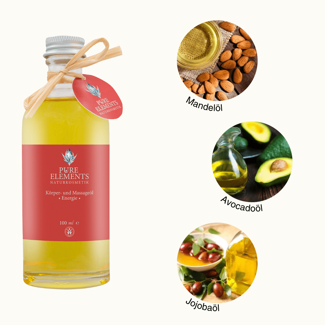 PERFEKTNÉ PRE ZVÝŠENIE ENERGIE. Telový a masážny olej „Energy“ je revitalizačný olej, ktorý povzbudí unavené a vyčerpané svaly po náročnom dni. Dá sa použiť na príležitostné aj profesionálne masáže pre dodanie novej sily a vitality.